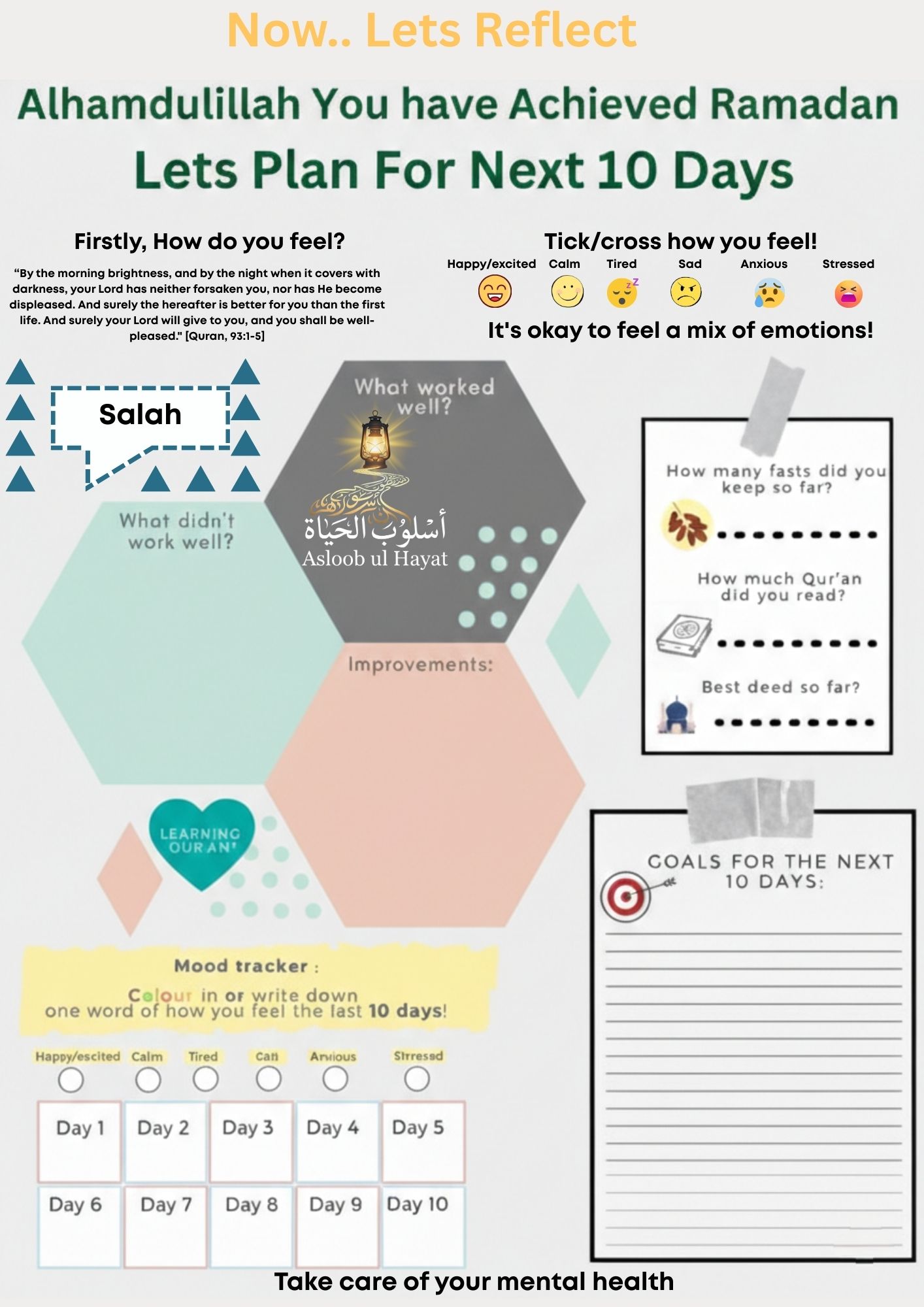 Habit and Mood Trackers: Reflection sheets where kids can color in their moods for the last 10 days of Ramadan.